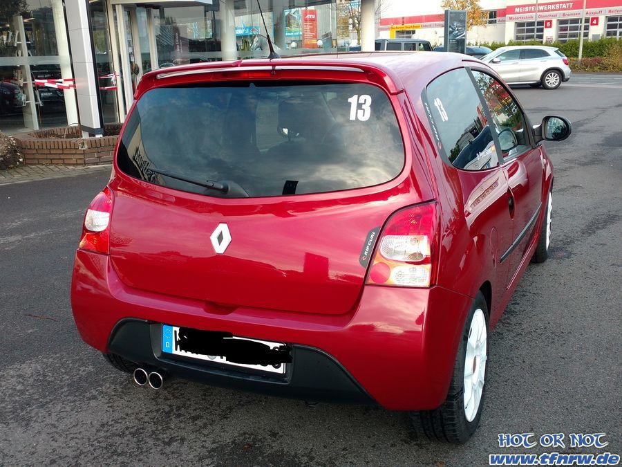 | Änderungen | -FK Gewindefahrwerk -Fox Endschalldämpfer -60mm Abgasrohr zwischen Kat und Endtopf -Speedline Felgen -Powerflex PU Buchsen am Stabi -8" Android Radio mit Torque Pro -Schroth Rallye 3 an Fahrer- und Beifahrersitz -Rücksitze ausgebaut -Stoßfänger beide teilweise foliert -Renault Embleme und Spiegel weiß foliert -Ein bisschen Deko |